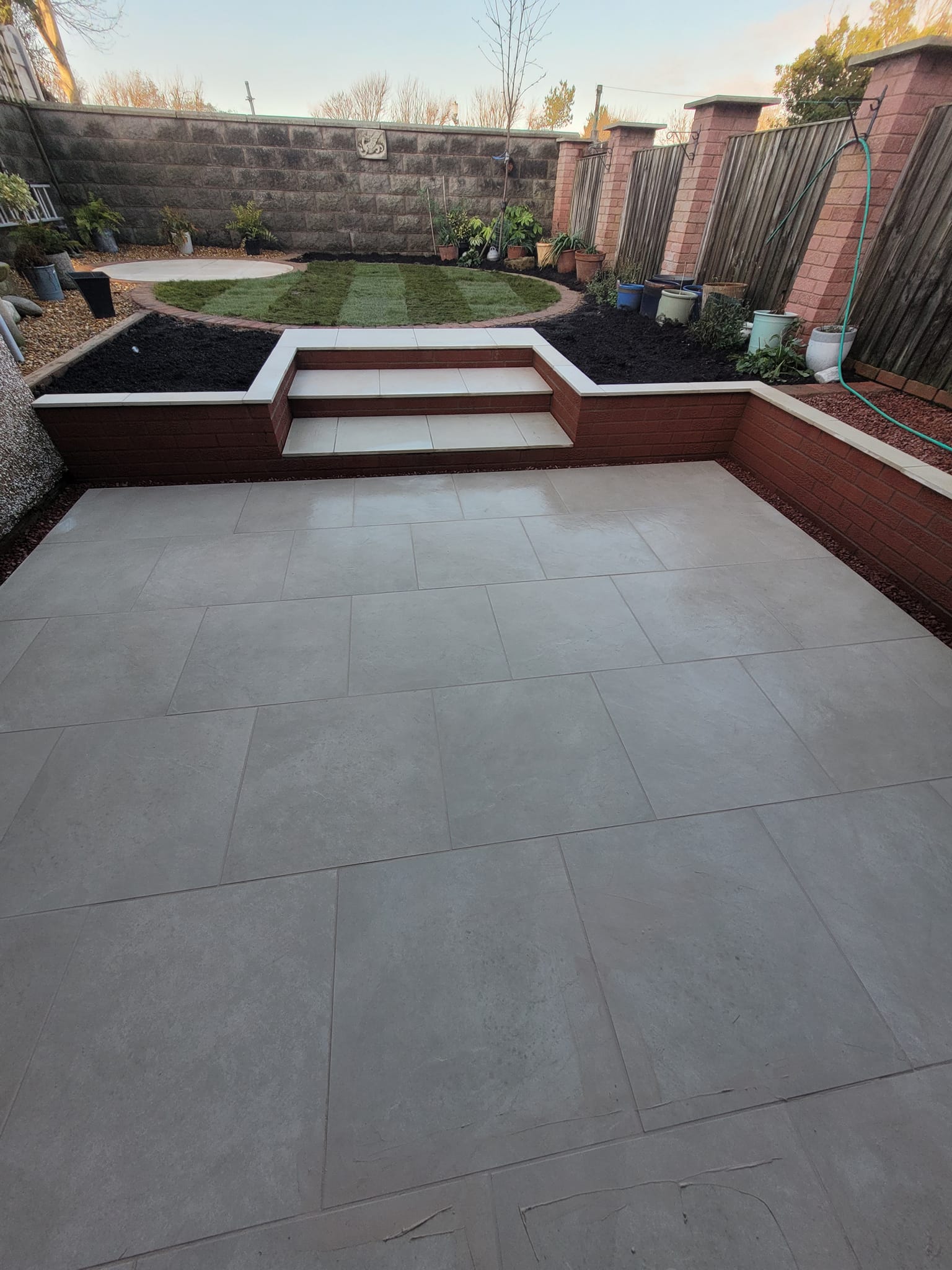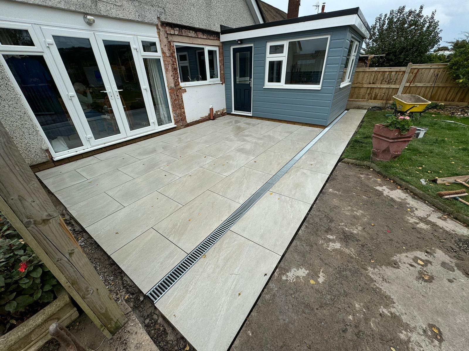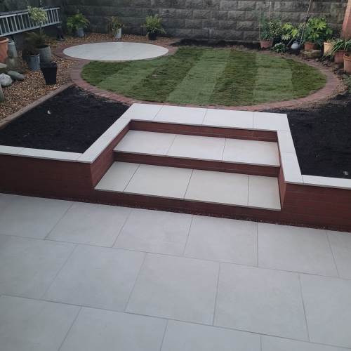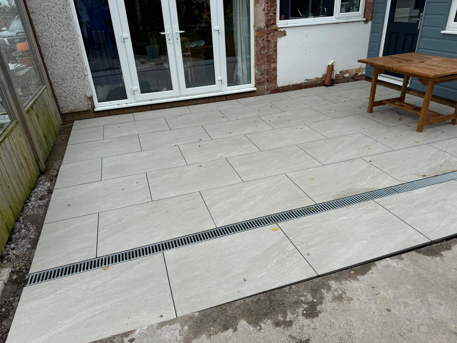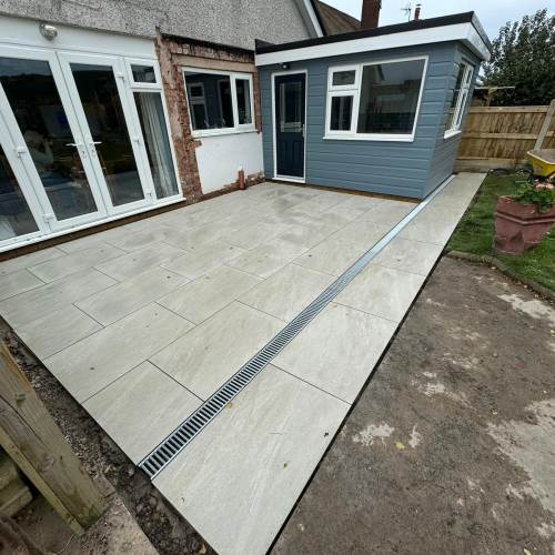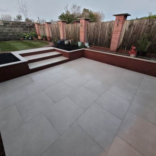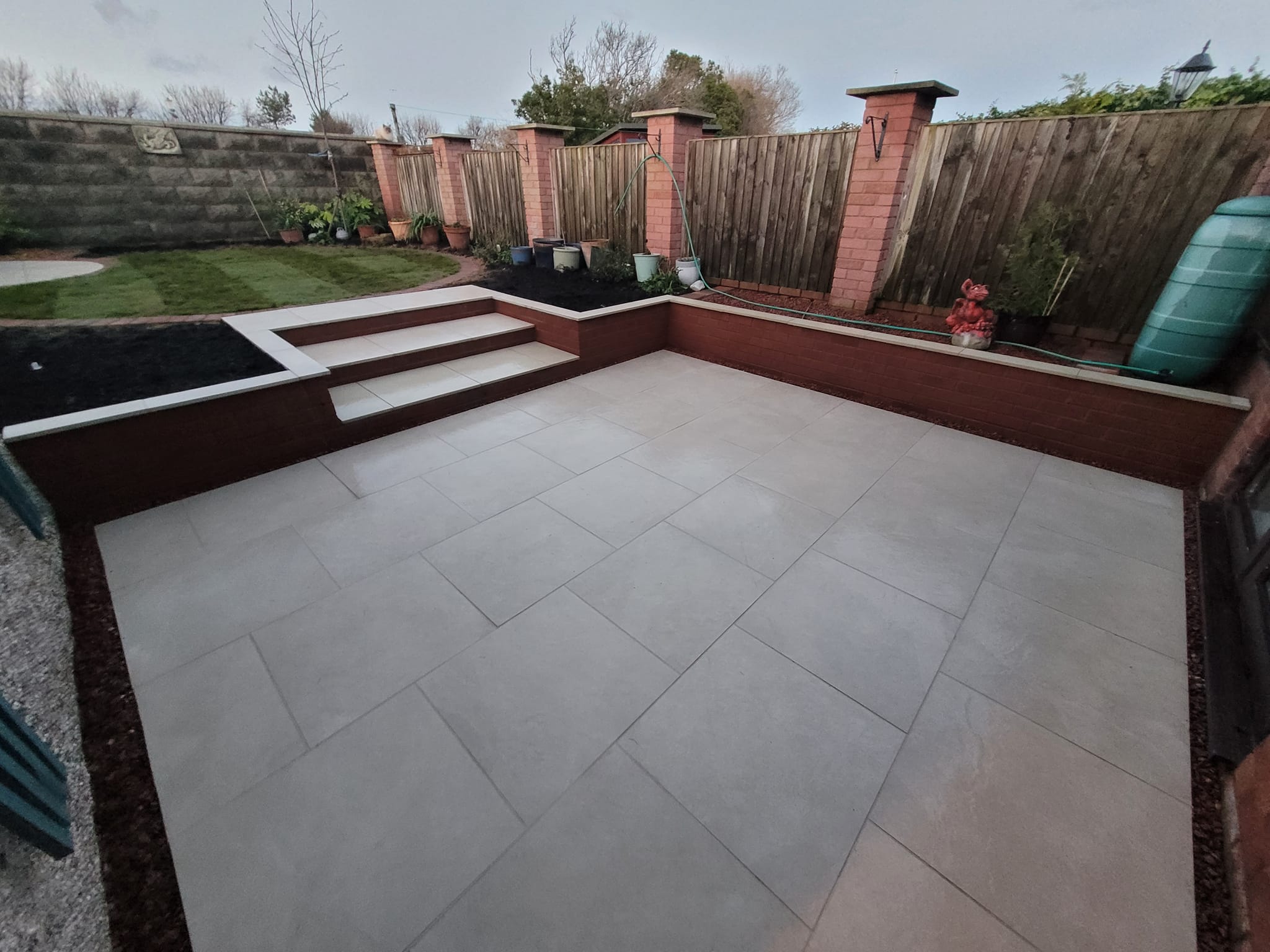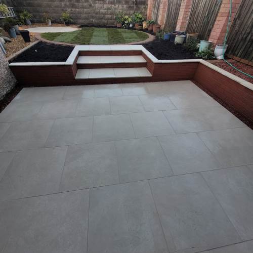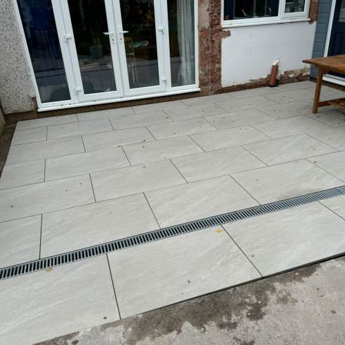 " Porcelain patio installed completed when agreed really happy with end result the lads worked really hard and kept the work site as clean as possible would highly recommend. "