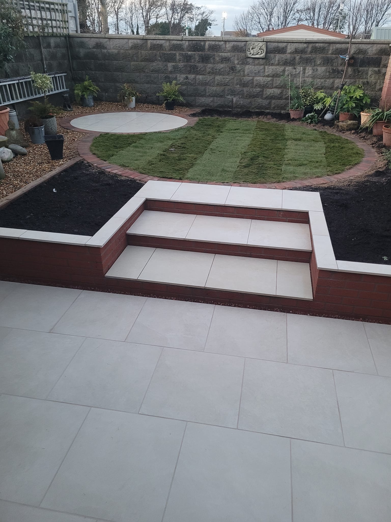 " Very professional work completed with the replacement of an old patio and lawn with porcelain tiles and edging. Dave and his team were friendly and polite and completed all tasks to an extremely high standard. We would definitely recommend them to anyone requiring similar work. Dave made various useful suggestions which helped with the final design. "